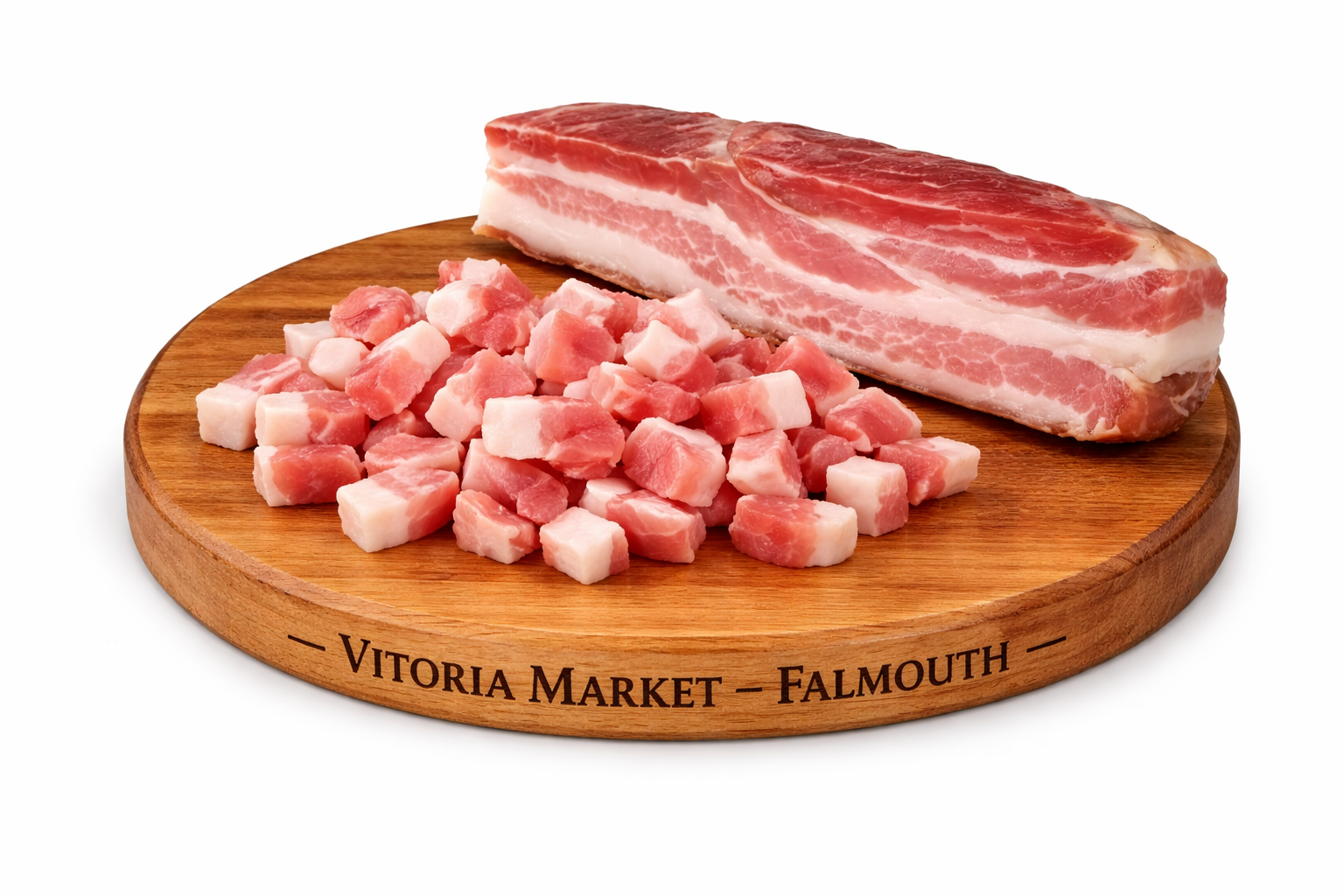 Fresh Bacon – $6.99/LB. Brazilian-style butcher cut at Vitória Meat Market, Falmouth MA. Island delivery every Thursday.
